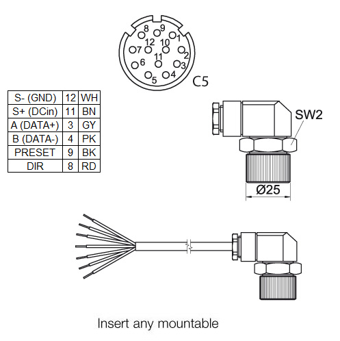 C5 fiş çıkışlı, 12 kutuplu, IP67 fiş çıkışlı