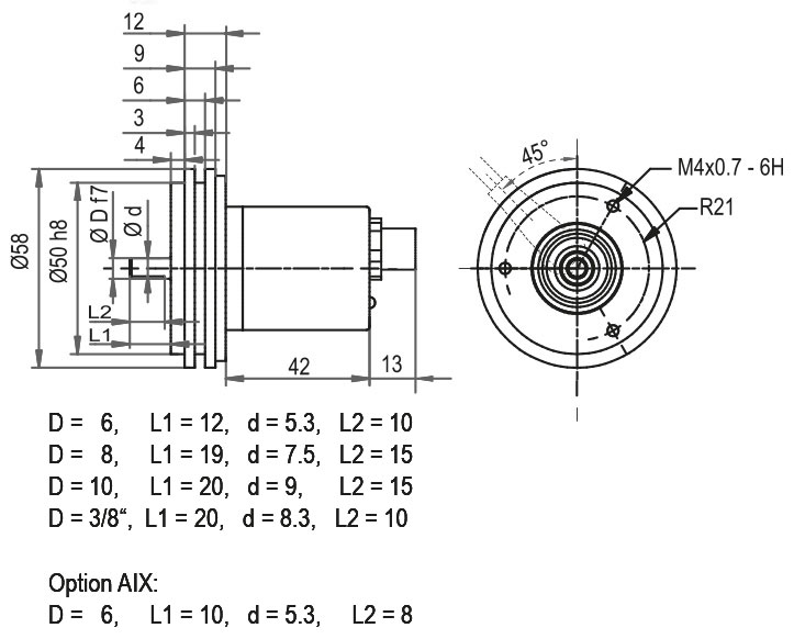 WDGA 58A RS485 şaft: Ø 6 mm kısaltılmış şaft L = 10 mm ile de mevcuttur.