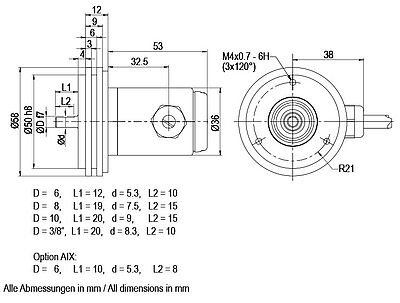 Ø 6 mm veya Ø 10 mm şaftlı döner enkoder için.