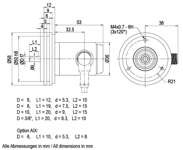 Ø 10 mm veya Ø 12 mm şaftlı döner enkoder için.