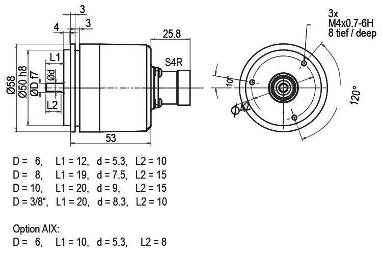 Enkoder WDGI 58A şaft: Ø 6 mm kısaltılmış şaft L = 10 mm ile de mevcuttur.